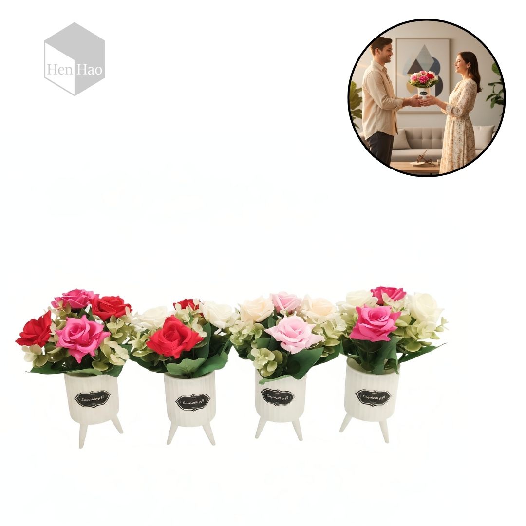 Arreglo floral decorativo con rosas artificiales en maceta trípode – 20 cm x 17cm, flores...