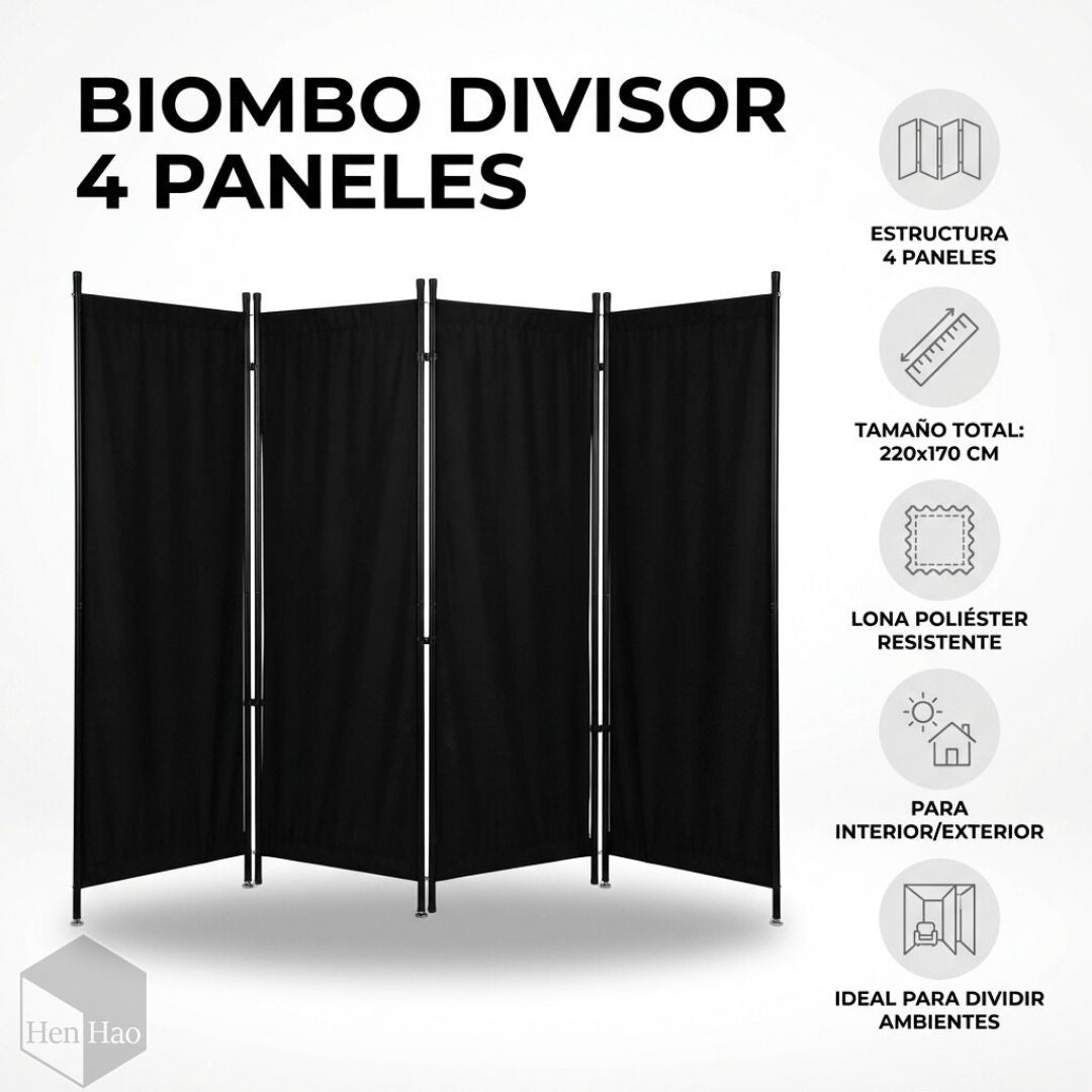 Biombo divisor de ambiente 220×170 cm de 4 paneles – Separador plegable de hierro y...