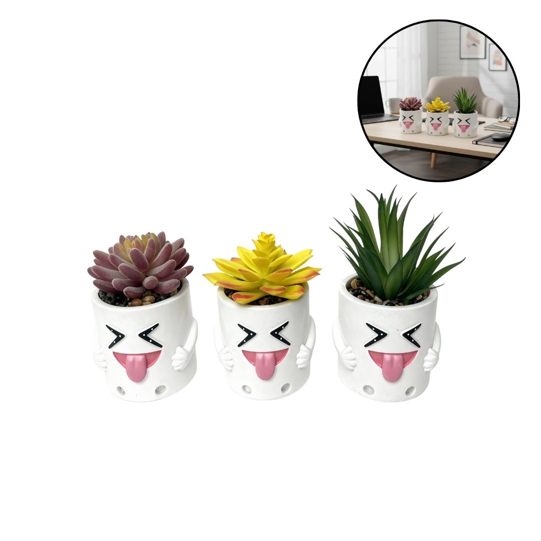 Maceta decorativa de cemento con suculenta artificial 13.5 × 10 cm ~ 17cm – Diseño...