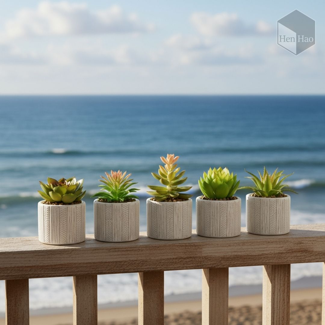 6 Mini maceta de cemento con suculenta artificial 9 × 6 cm aprox – Adorno decorativo moderno para escritorio, sala o estantería